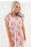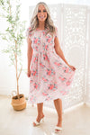 Our new Rosa dress is the perfect floral piece for your closet! We adore the beautiful colors, dainty floral print throughout, short elastic cuffed sleeves, classic and comfortable shirred waistline and the perfect modest length skirt. This gorgeous dress won't last for long, so get yours soon!