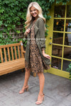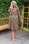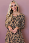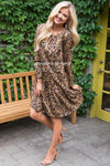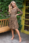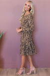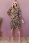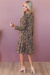 The New Roxy is the perfect dress for you! Flattering to any figure! This adorably cut leopard print shift dress has the most unique features! Get ready for compliments galore! The Roxy has long sleeves, perfect for the fall and winter seasons. A rounded neckline and a fun stylish asymmetrical ruffle skirt with a straight hemline at the bottom.