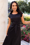 Adding a beautiful dress is always a good idea! Add the Royce to your wardrobe today to be cozy and stylish ready at a moments notice! Featuring a round neckline with short cap sleeves, belt tie waistline and the perfect length skirt for all!