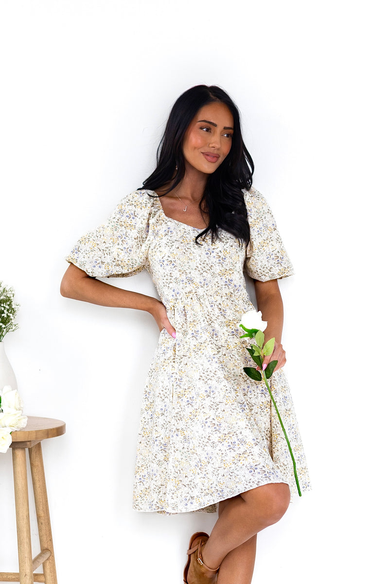 Kickstart your Fall wardrobe with the new Ru! We simply adore the delicate floral material, lovely sweetheart neckline with flattering and comfy smocked backing, pockets and ruffle hem skirt beyond measure! This is a true must have for everyone!