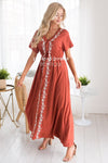 The most eye-catching embroidered maxi has just arrived and you are going to be in love! The Rylan features a empire waistline with a functional drawstring detail, which creates the perfect fit for you. Other things to love about this dress is the v neckline, short sleeves and it comes lined everywhere except the arms. Don't wait too long on this gem, it'll be gone before you know it!