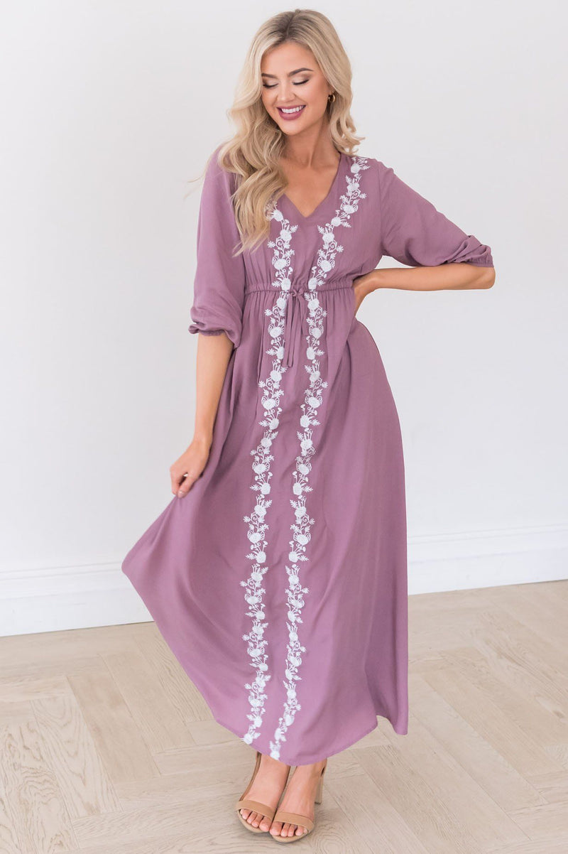 The most eye-catching embroidered dress has just arrived and you are going to be in love! The Rylan features a darling functional drawstring waistline, soft v-neckline, 3/4 length sleeves and is lined everywhere except the arms. Don't wait too long on this gem, it'll be gone before you know it!