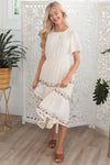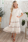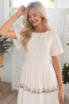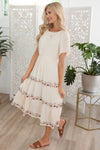 This classic tiered skirt with delicate rose embroidery and greenery makes for a elegant and feminine piece you want to miss out on! The bell sleeves, cinched waist, and scooped neckline will have you hooked we just know it!