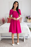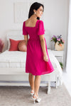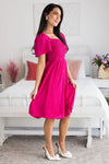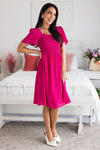 This lovely textured pattern dress is breathtaking! The darling squared neckline and smocked bodice, short flutter sleeves and perfect mid-length skirt is all you need for any season! Grab the Sage today because we promise you this sweet thing will not last long!