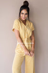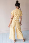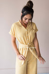 Are you ready to celebrate in our new comfy jumpsuit? You will never complain about being uncomfortable in this piece. We promise this is going to be the jumpsuit of your dreams! It features the cutest functional v-neck button down bodice, elastic waistband w/ tie waist, and last but not least it has pockets! This one is going to go flying off the racks! Hurry and grab yours now!