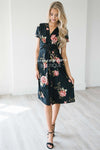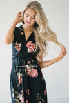 The Samantha is soon worthy! We fell in love with this dress instantly! This Black dress features a blush floral print, a twist front detail and short sleeves!