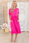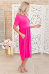 This gorgeous coral flowy dress is perfect for everyone! We love pairing it with our favorite accessories and jackets! Get your today because this super soft darling will go quickly!