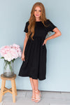 A truly comfy and simple dress, perfect for easy wear. Our Sandie dress features a round neckline, short sleeves, elastic waist and side seam pockets. We love pairing it with our favorite accessories and jackets. Get your today because this super soft darling will go quickly!