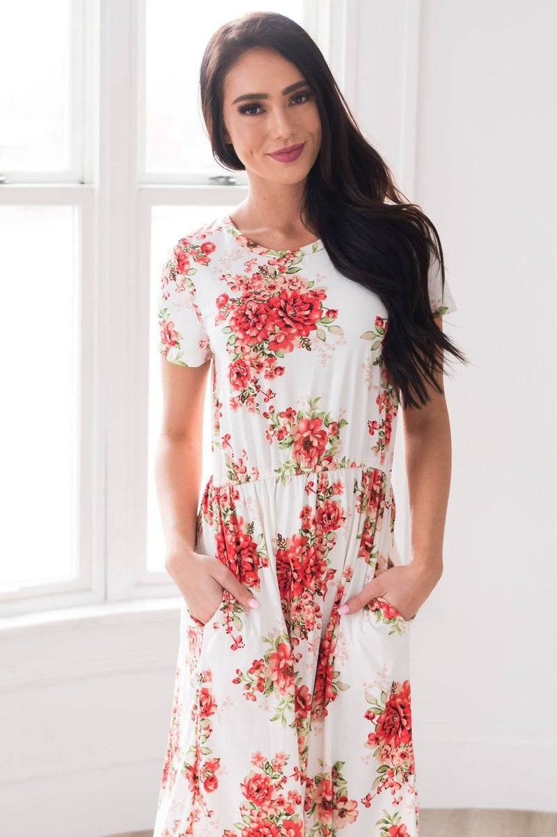 We strive to bring you the most cozy and classy dresses around! The Santana fits both of those perfectly, the material is so buttery soft you are not going to want to take it off! This dress, also features a round neckline, elastic waistband, short sleeves and pockets. Make this a summer must have and add it to your cart now!