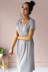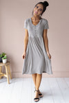 The darling Sarika is bound to make an impact! This lovely little mid-length dress is a show stopper featuring the perfect modest length, pockets, short fitted sleeves with a soft v-neckline and faux button detailing down the bodice.