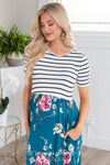 When beautiful meets comfortable, The Sasha is oh so pretty! This maxi dress will leave you feeling beautiful for any fall occasion! Featuring a striped bodice with the perfect contracting floral maxi skirt! Get yours today!