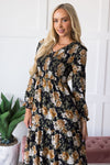 We are so excited about the new September dress! This dress is so perfect for any occasions! We love the modest soft v-neckline with feminine shirred bodice, long puff sleeves, lovely Fall Frenzy floral throughout, and the fully lined flowy tiered skirt! You will love the September, get yours today!