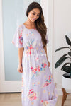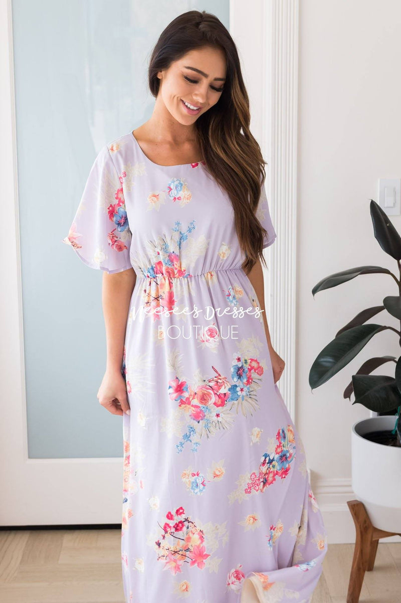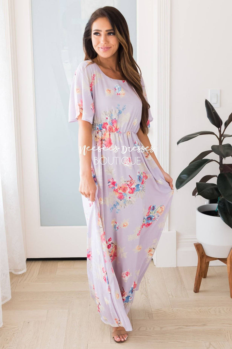The Shana simply had us smiling from the second we spotted this beauty! This lovely floral chiffon dress is your next must have for summer! Get yours today! Features, soft flowy material, rounded neckline, short flutter sleeves, elastic waist and a full flowy maxi length skirt!