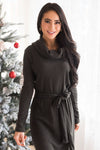 Wanting that perfect dress for all those winter outings you have coming up? Look no further the new Shanann it's going to be your new go-to! This dress has all the perfect details that everyone will love. Features include a classy cowl neckline, long sleeves, belt tie waist and the most stretchy cozy soft ribbed thermal material!