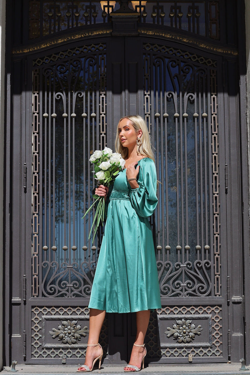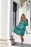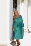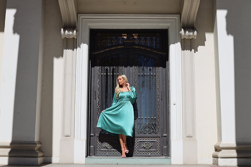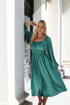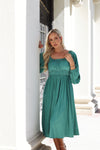 Jade lustre just rolled in and stole our attention! The only thought we had was wow, we need this dress! The new Shanti features a slip on style, gorgeous double banded empire waistline, long bishop style sleeves and the perfect tea-length style! Grab yours before they are gone!