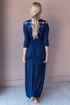 On the search for the most amazing maxi?! The lovely classy Sharalee is it! Perfect to wear solo or to layer with all of your favorite accessories! Featuring a modest round neckline, 3/4 length sleeves, elastic waist, pockets and the loveliest flowy maxi skirt!
