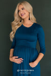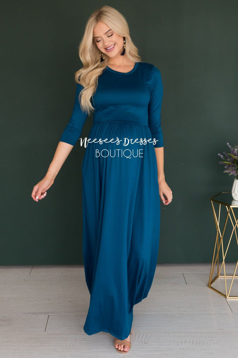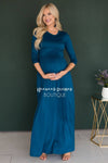 On the search for the most amazing maxi?! The lovely classy Sharalee is it! Perfect to wear solo or to layer with all of your favorite accessories! Featuring a modest round neckline, 3/4 length sleeves, elastic waist, pockets and the loveliest flowy maxi skirt!