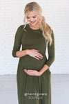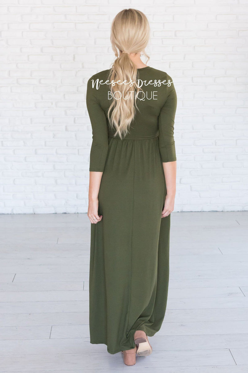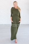On the search for the most amazing maxi?! The lovely classy Sharalee is it! Perfect to wear solo or to layer with all of your favorite accessories! Featuring a modest round neckline, 3/4 length sleeves, elastic waist, pockets and the loveliest flowy maxi skirt!