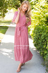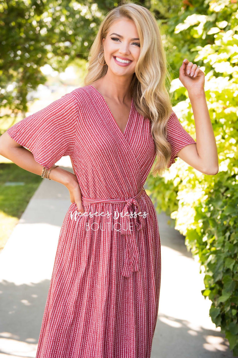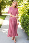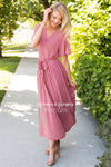 So comfy and cute, there is no way you could go wrong with this dress! Dress it up for a night out or keep it casual for a fun day of shopping. Features a cross bodice with button closure for comfort, style and modest nursing, for all you mamas out there. Short flutter sleeves, an elastic waste with self tie belt and is also fully lined.