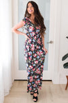 This lovely charcoal floral maxi is bound to be your next all time favorite! Featuring a round neckline, slight drop empire elastic waist, short sleeves, flowy maxi skirt and our absolute favorite dark rose and blue floral print! Get it today!
