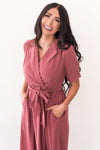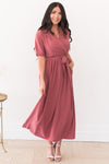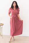 Say hello to this gorgeous maxi dress! Featuring a beautiful raspberry color, a collared neckline that makes it nursing friendly, pockets, and a belt tied waist! Truly a must-have dress for anytime of year!