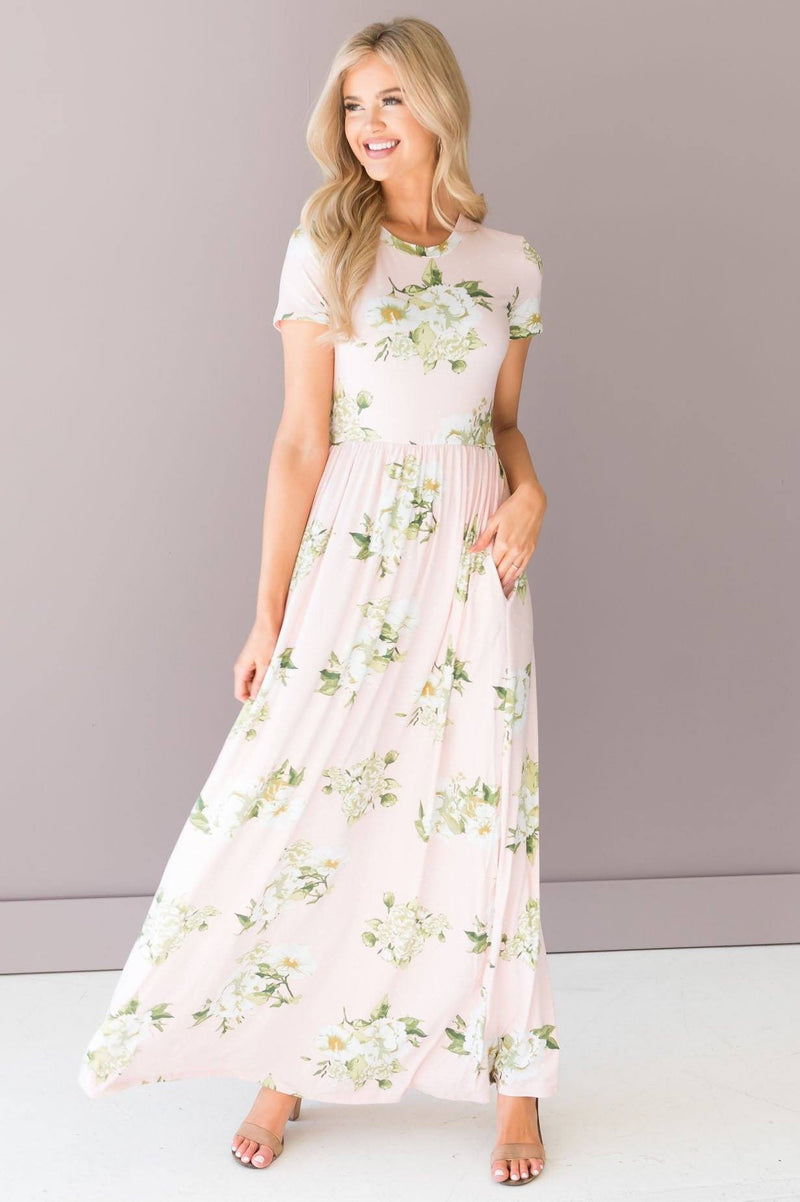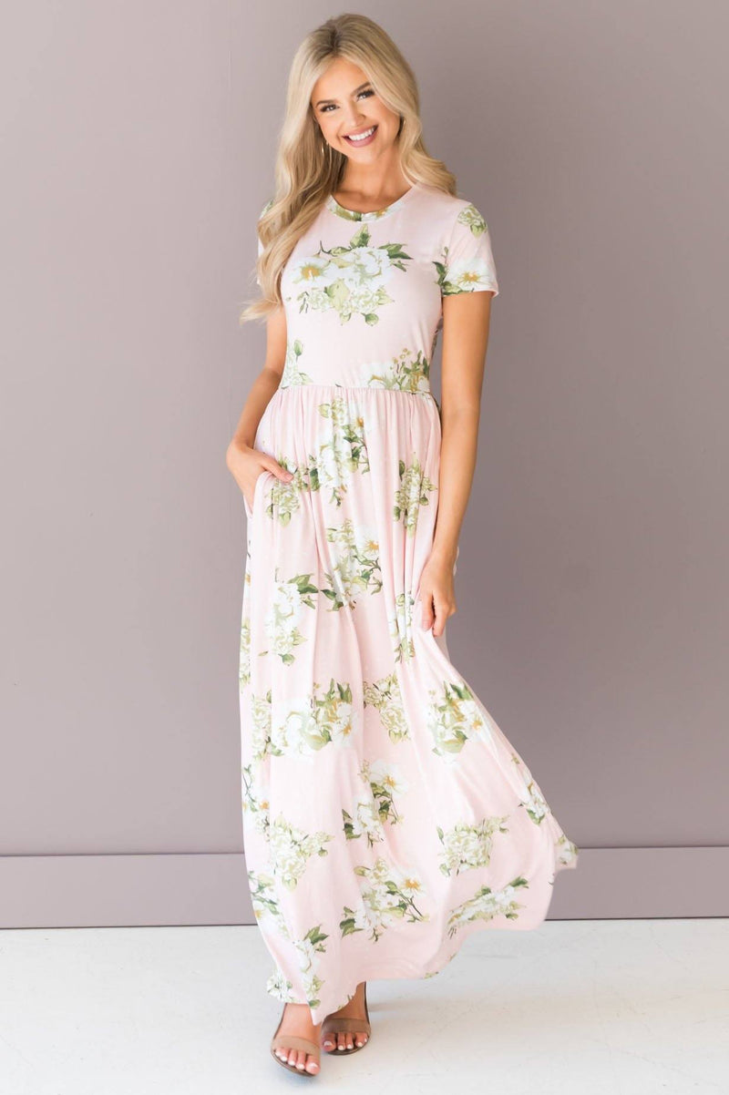 The Sierra is here and we can hardly hold back our excitement! We love the feminine style and short sleeves! Also featuring a modest round neckline, elastic waist, pockets and the perfect maxi length skirt! Get yours today!