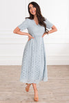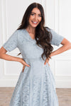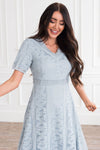 This Siya Dress is absolutely spectacular from the lace overlay to the darling soft v-neckline! This delicate feminine lace dress features short sleeve and tea length skirt is perfect for any special occasion! The circular lace design will take your breath away!