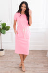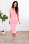 The coziest Sky jersey t-shirt dress has arrived and we promise you, you are going to want to get your hands on this beauty before it's gone! Featuring rounded neckline, short sleeves, comfy cozy material, drawstring waistband and darling modest hemline slits give this dress the perfect finish! Get yours today!