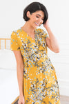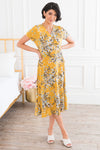 The darling Solina has arrived and it truly made out day! This lovely cherry blossom inspired print has all the best features! Including, short sleeves, delicate cross-over bodice, side tie waistline detailing and the perfect tea-length skirt. This one is a wardrobe must have!