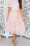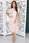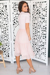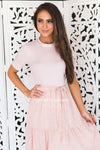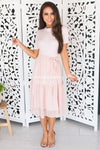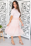 The Sonny dress is one you are going to want to join your wardrobe! This modest blush sprinkled color beauty is made out of the most gorgeous ever material! Featuring a ribbed bodice with a rounded neckline, short sleeves, elastic belt tie waist, and a flowy tiered sprinkle skirt! Get yours today!