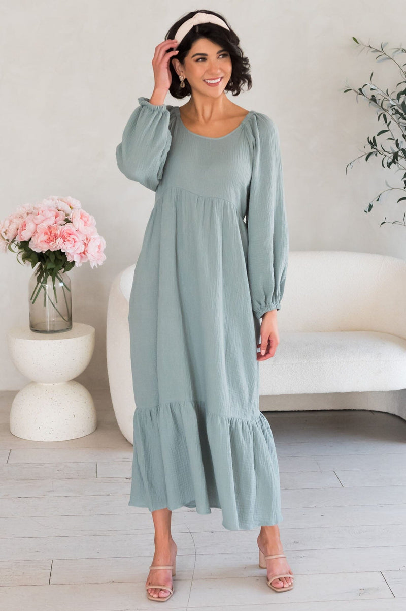 Classy, sassy, light and airy! The new Sophi gauze waffle fabric dress has all the best features and will carry you from day to day in style! Features include, long puff sleeves, drop empire fit, and perfect length ruffle hem skirt. Get yours today!