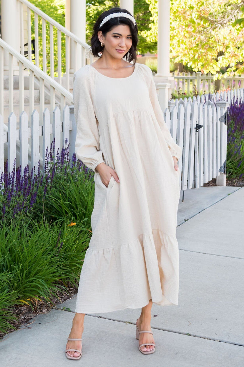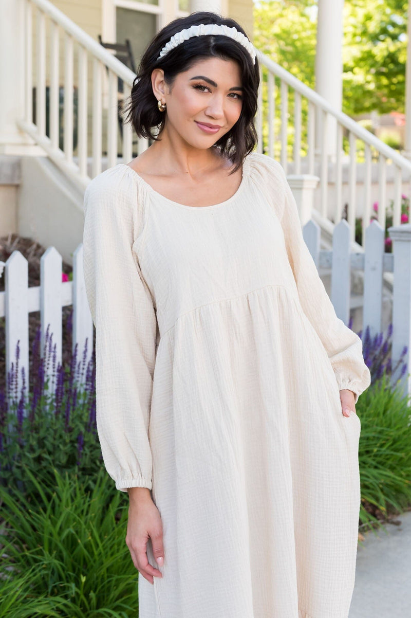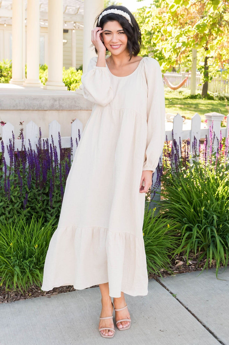 Classy, sassy, light and airy! The new Sophi gauze waffle fabric dress has all the best features and will carry you from day to day in style! Features include, long puff sleeves, drop empire fit, and perfect length ruffle hem skirt. Get yours today!