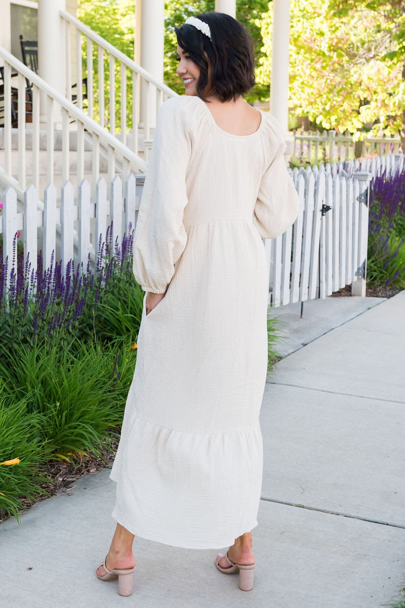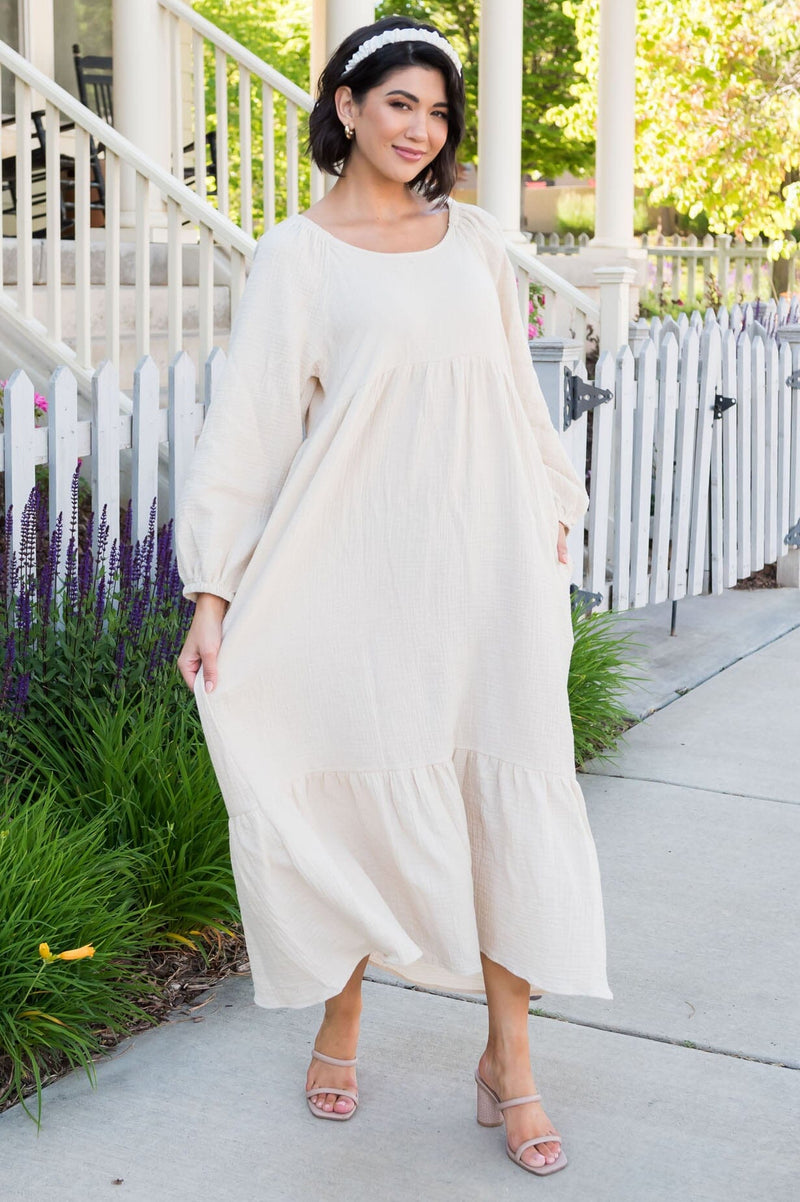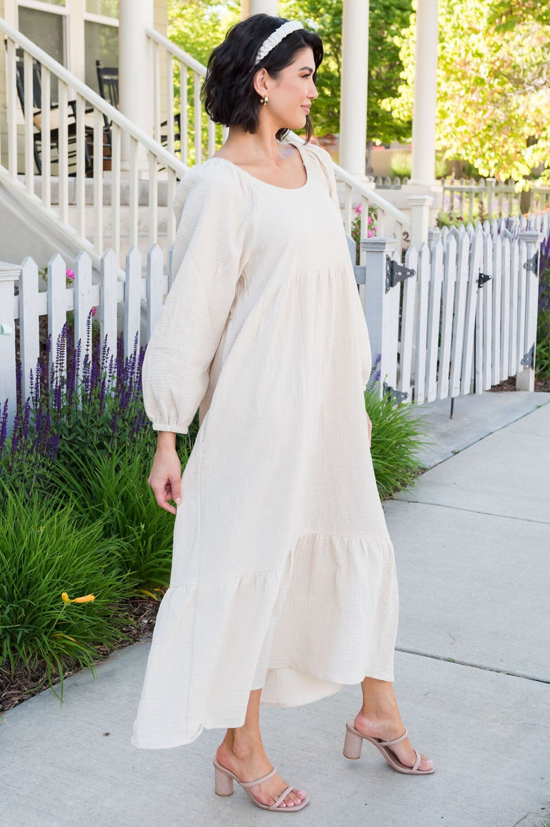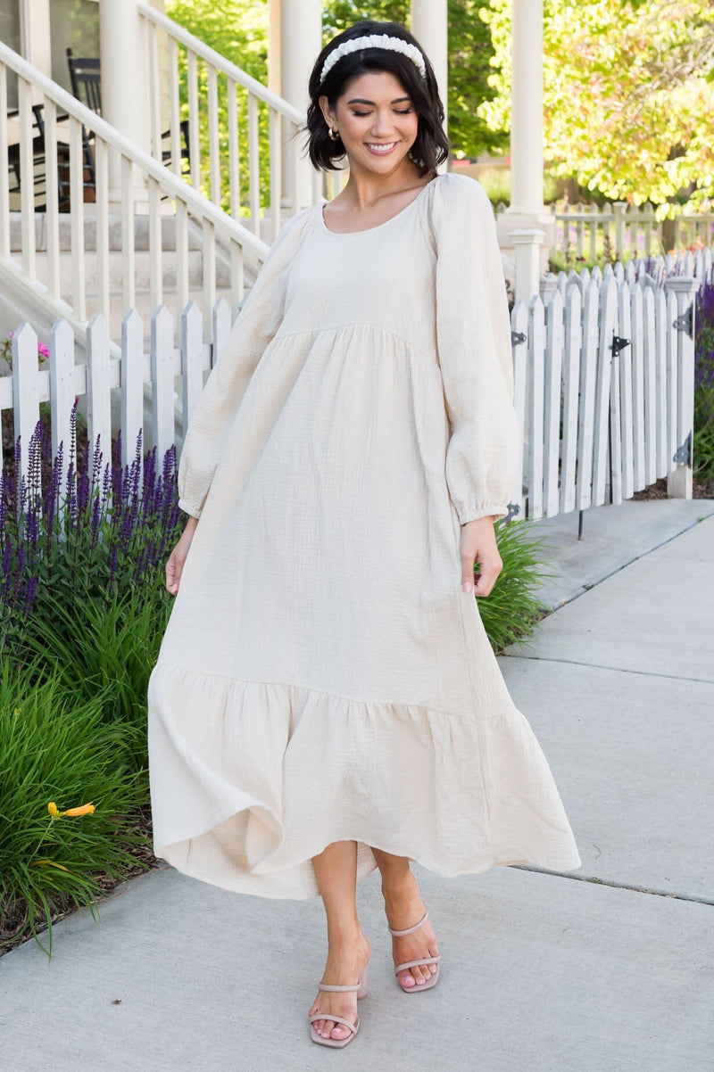 Classy, sassy, light and airy! The new Sophi gauze waffle fabric dress has all the best features and will carry you from day to day in style! Features include, long puff sleeves, drop empire fit, and perfect length ruffle hem skirt. Get yours today!