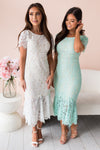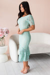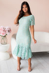 We are beyond in love with the breathtaking and stunning new dress! Beautiful mint dress has a lovely mermaid fit with short sleeves and a full flared hem. Lined with a back zipper closure.