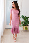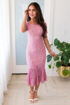 We are beyond in love with the breathtaking and stunning new dress! Beautiful rose dress has a lovely mermaid fit with short sleeves and a full flared hem. Lined with a back zipper closure.