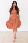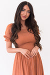 We are so excited about The Spencer! This dress is so perfect for any occasion! We love the flattering all shirred bodice, short puff sleeves and the to die for sheen orange color! You will love this darling gem, get yours today!