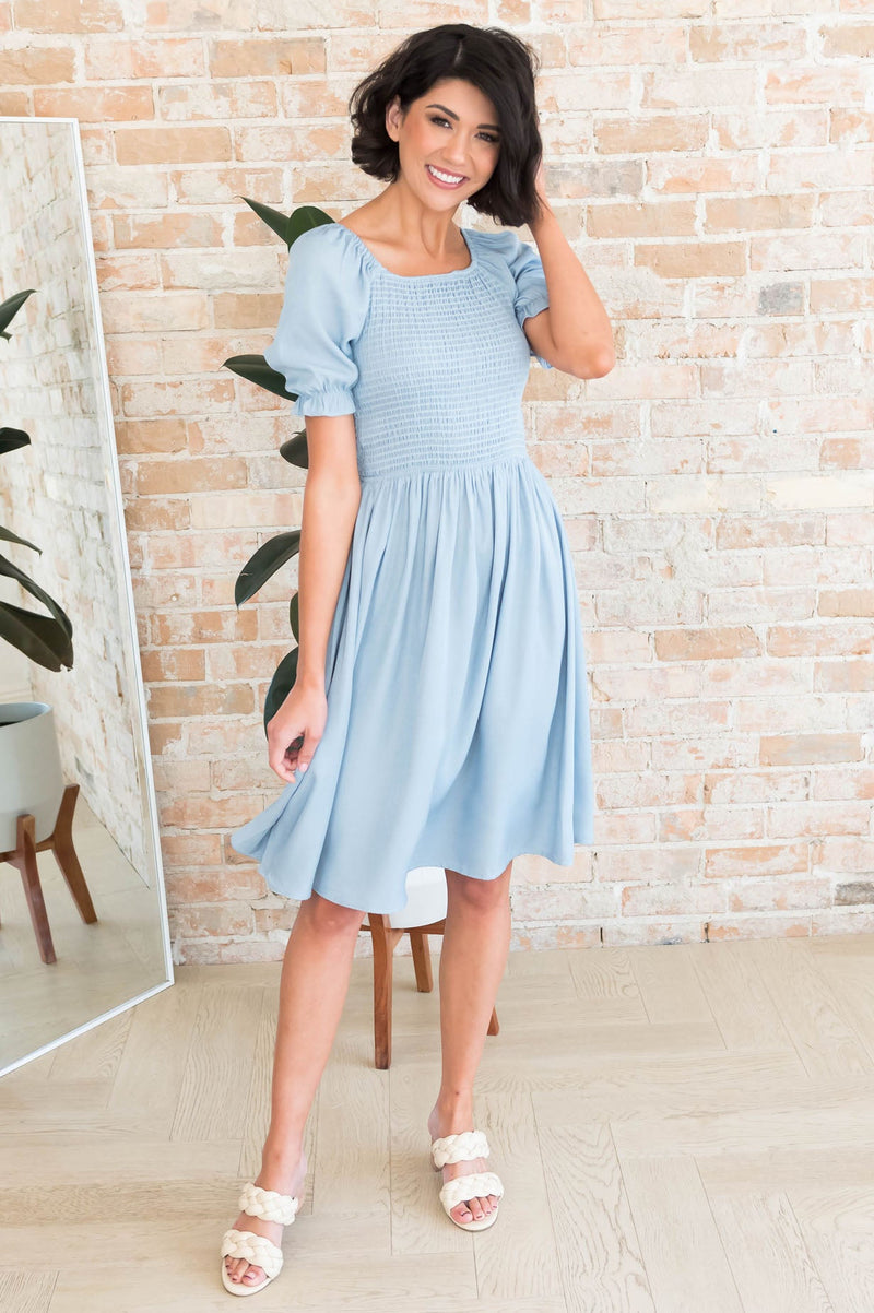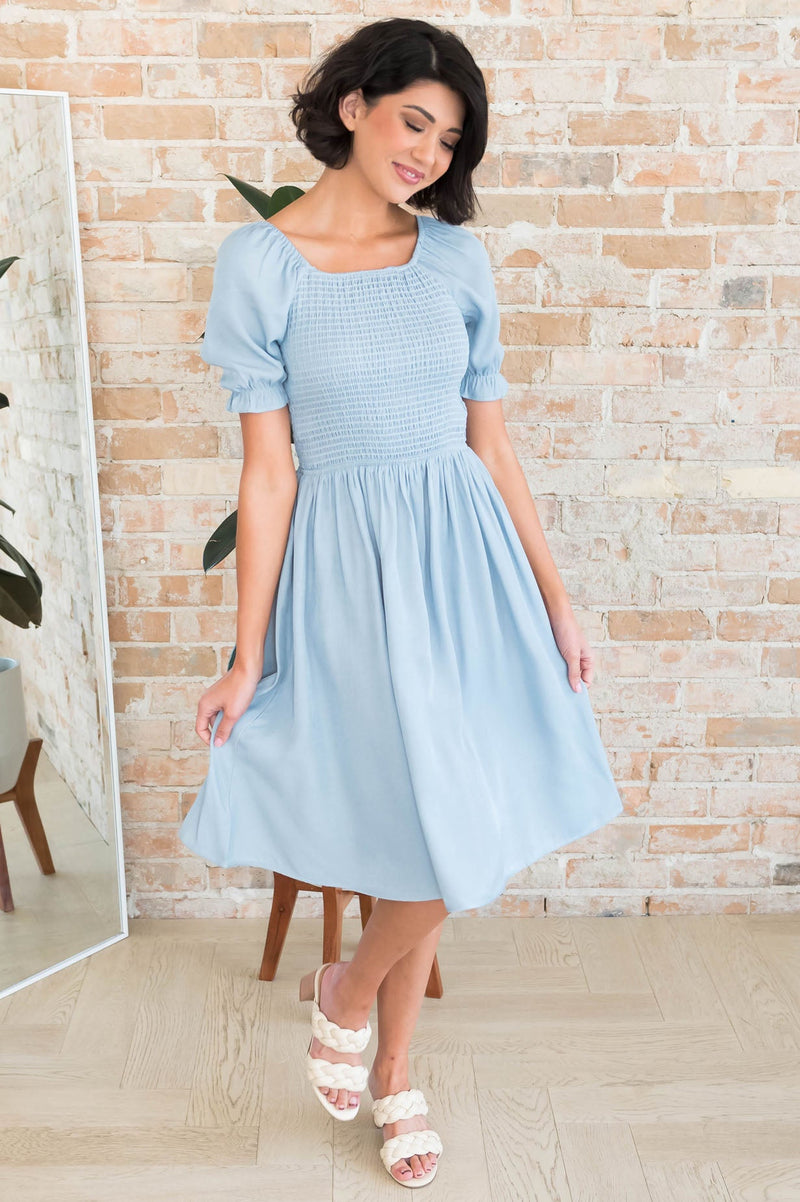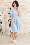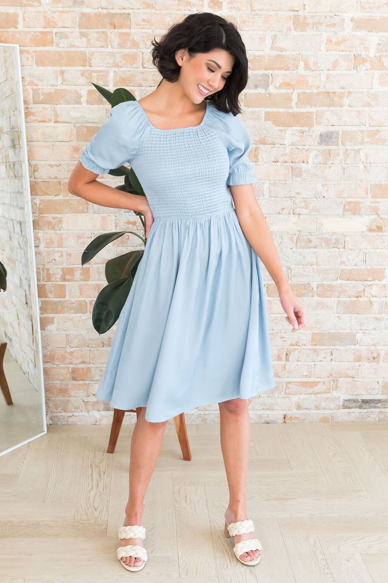We are so excited about The Spencer! This dress is so perfect for any occasion! We love the flattering all shirred bodice, short puff sleeves and the to die for faded blue color! You will love this darling gem, get yours today!