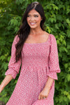 If you have been on search for the perfect summer dress, we have the one for you! Our new, modest, Vanessa Dress, is absolutely adorable. Featuring the cutest white mini floral, a square neckline, flattering smocked bodice, and 3/4 length sleeves.