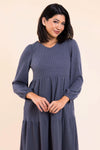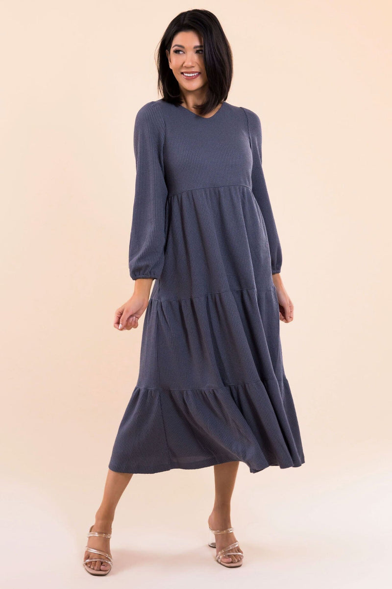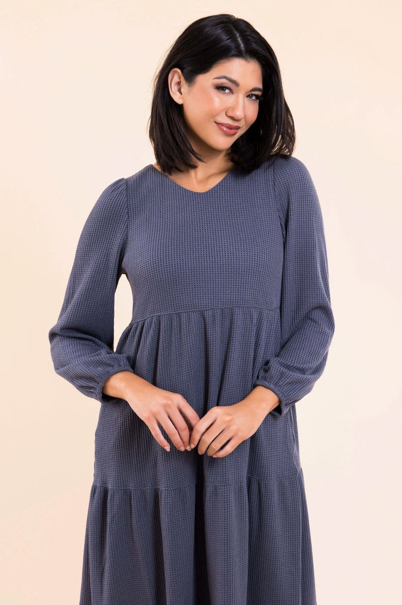 We are proud to bring the new Storey! This darling waffle fabric dress is bound to make an impact! Features modest round neckline, quarter length sleeves, pockets and a flowy tiered skirt. Get yours today!