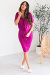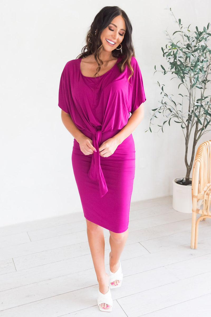 We are simply in love with our Sue Ellen dress! This darling knot tie waist dress is so delicate and perfect for anything life throws your way! Featuring a lovely modest round neckline, short sleeves, and a gorgeous pencil fit skirt.