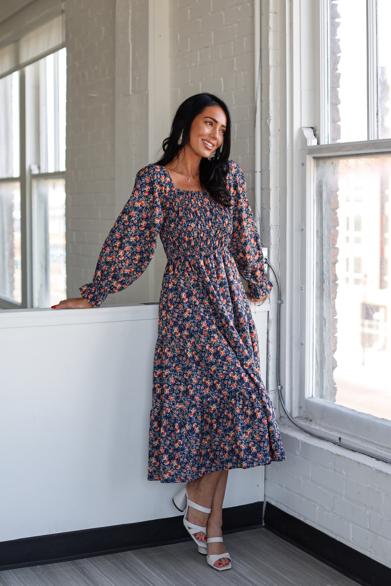 Spring is blooming with the new citrus bloom Sullivan! Grab this wardrobe must have today before they are gone, this beauty had all our favorite features. Including a squared neckline with smocked bodice, long sleeves and a gorgeous ruffle hem skirt. Get yours today!