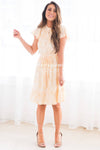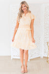 Hello Sunshine, this lovely summer time dress is going to be your next favorite! Featuring lovely modest ruffle neckline with a button closure detail, short flutter sleeves, elastic waist with a belt tie and a gorgeous feminine ruffle hemline. You are not going to want to miss the New Sunshine, add to cart today!