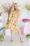You are going to be welcoming the warm weather in our stunning Susie lace trim midi! Yellow dresses make us happy and will have you glowing like a ray of sunshine. The material is so soft you could totally nap in it! Calling all nursing moms this is going to be the perfect dress to have in your closet. This dress features a gorgeous lace trimmed surplice neckline, elastic waistband, short sleeves, self tie belt detail and a handkerchief hemline. Pair this with a sun hat and your fave wedges or strappy sandals and you are ready for the day!