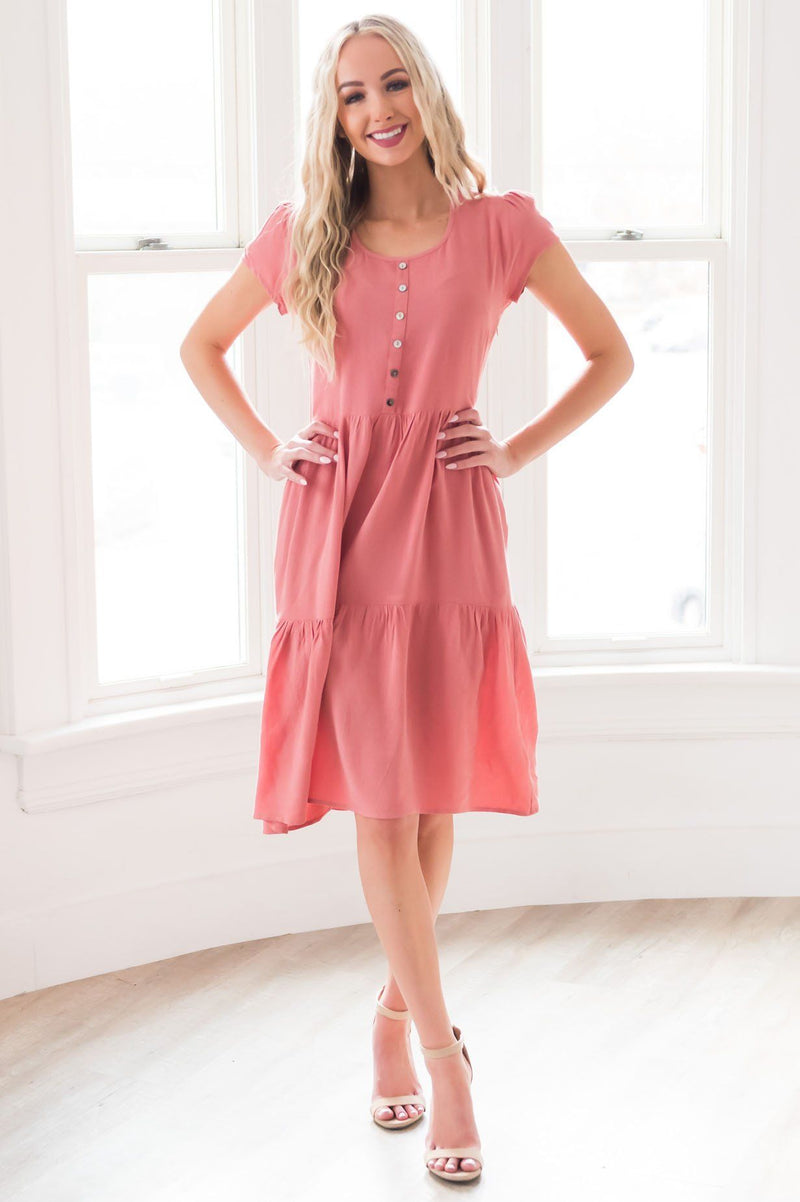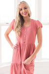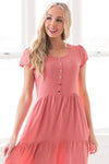 The new Susy is here and ready to take your breath away! We simply can not get enough of this light-weight flowy beauty! Featuring a round neckline with faux button bodice, short sleeves and the most gorgeous flowy tiered skirt. Get yours today!