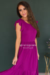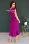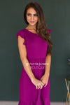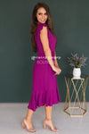 The Tabbie Modest ruffle dress has arrived for every single one of you spring and summertime events! This cozy yet classy little gem has all the best features, to include, short ruffle sleeves, darling magenta color, empire waist and our favorite ever ruffle hemline! Get yours today!