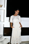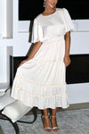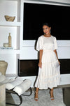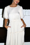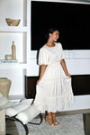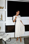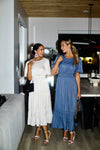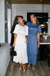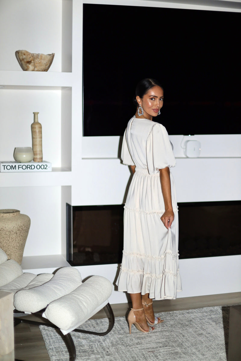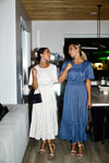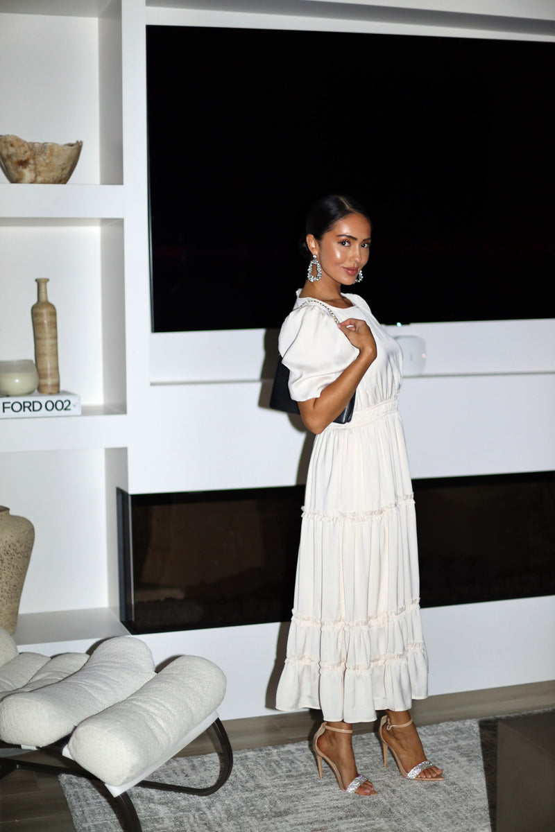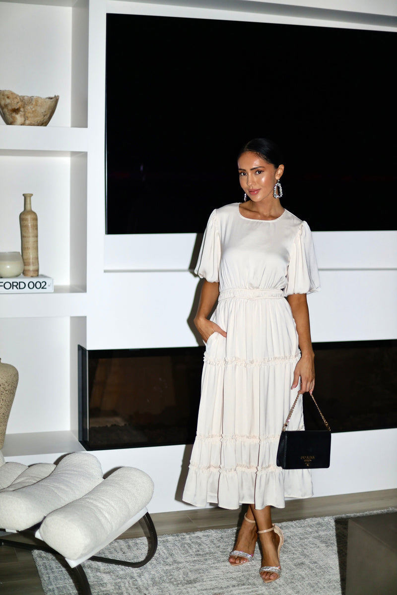 We are in love with stunning new Tala dress! This gorgeous, modest, satin ruffled beauty, is a true must have! Can you say *perfect* dress?! Featuring a modest round neckline, perfect fit bodice with double banded waistline, short flutter sleeves, the absolute perfect deep navy & flowy tiered ruffle skirt. Get yours today!