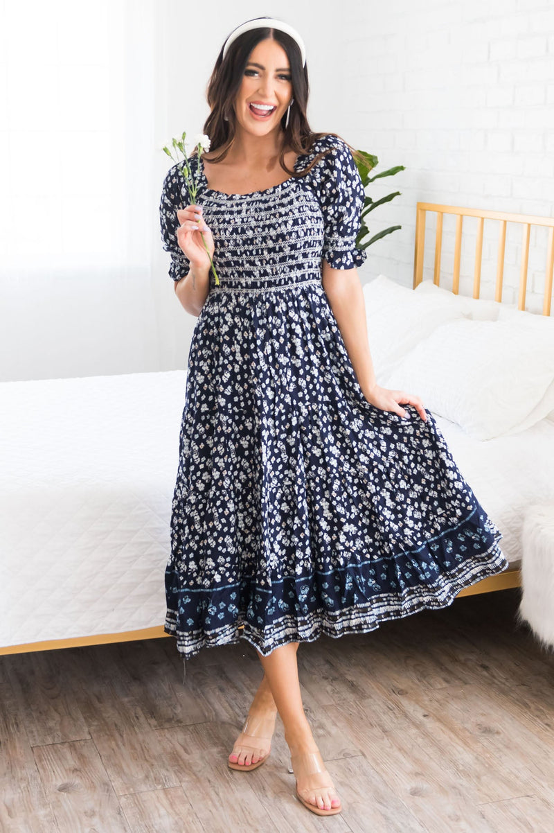 Obsessed with the darling new unique floral Tanis dress! This classy smocked top dress is so cozy and flattering! Features include half ruffled puff sleeves and the most gorgeous flowy skirt! Get this darling today!