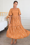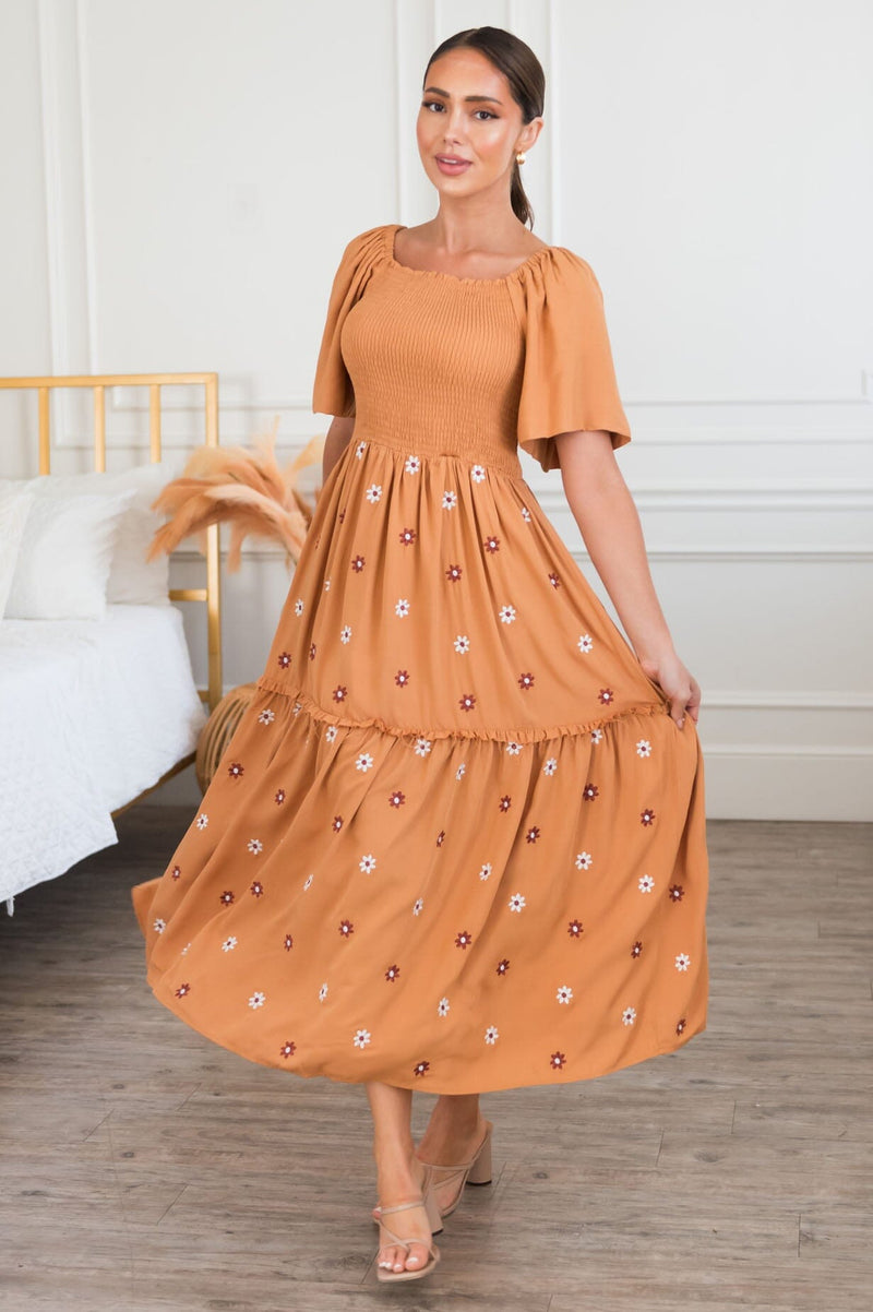 Currently falling in love with the new Tarryn! This lovely dress has stolen our hearts and we know it will be the perfect dress for Fall! Features include gorgeous daisy embroidery on the flowy tiered skirt, smocked bodice and our all time favorite short flutter sleeves. Get yours now before they are gone!