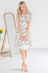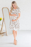 This darling Tahsa dress has stolen our hearts! This is one perfect piece to mix and match or accessorize! Featuring classy animal print, baby doll fit, short sleeves, elastic waist and a lovely drop skirt. You are going to want this added to your wardrobe, trust us!