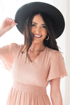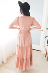Our new Taylor is simply elegance at its best! With gorgeous features such as the modest v-neckline, shirred elastic waistband, tiered ruffle detailing on the maxi skirt, and the stunning apricot color; you're sure to turn heads wherever you go! This darling dress has stolen our hearts, make sure to get one before they're gone!